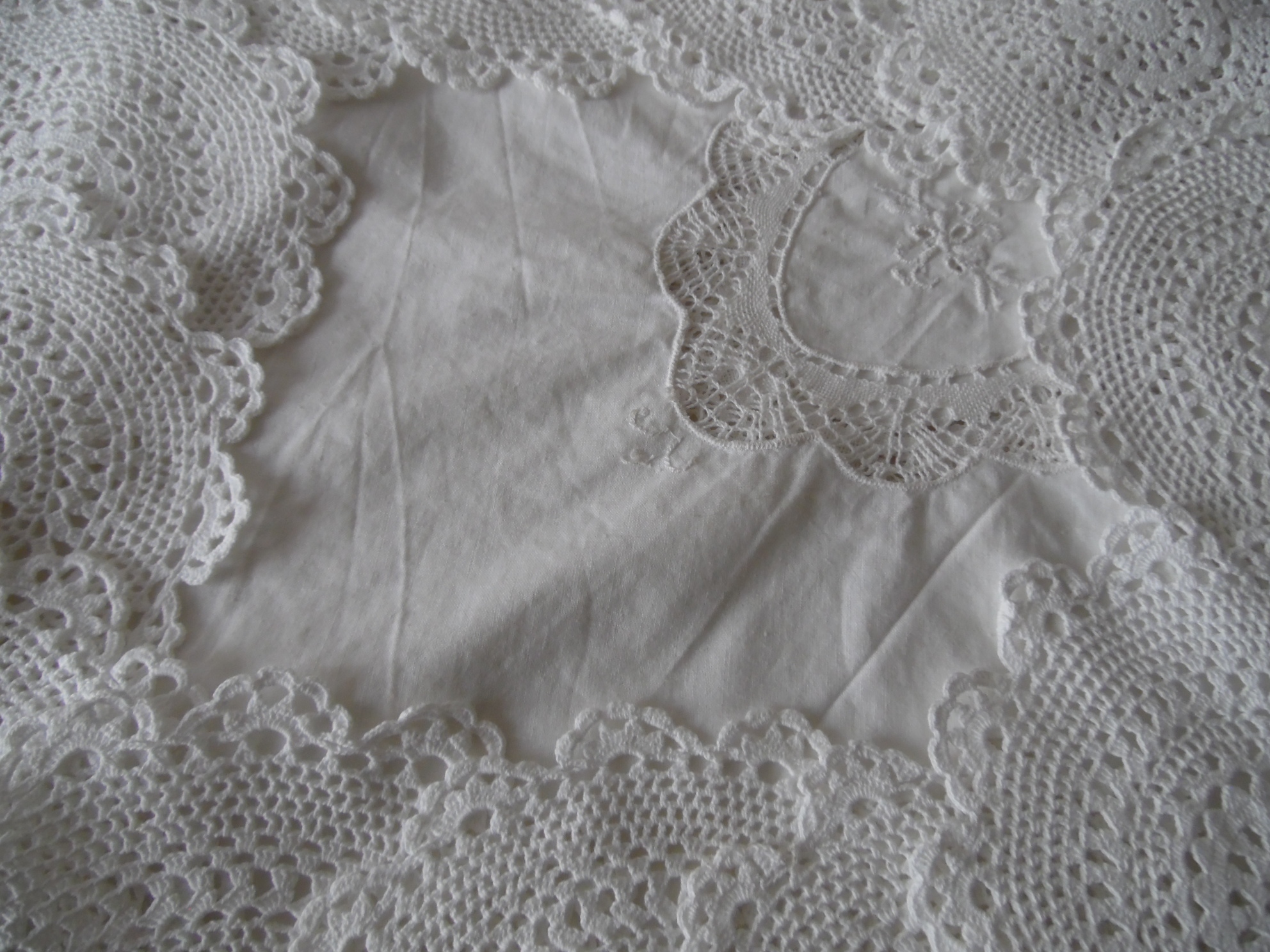 Набор кружевных салфеток, связанных вручную из белых хлопковых ниток крючком. Не использовался, не стирался, требует обновления. Размер: диам. 18 см, 12 шт