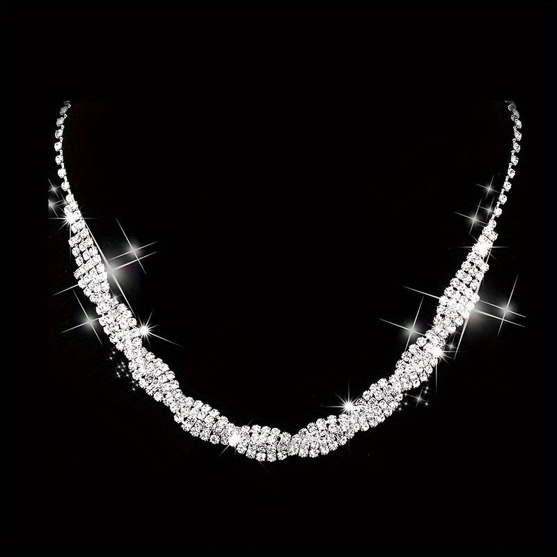 Набор Серьги Ожерелье Браслет Свадебный Серебряный Цирконий Кристаллы