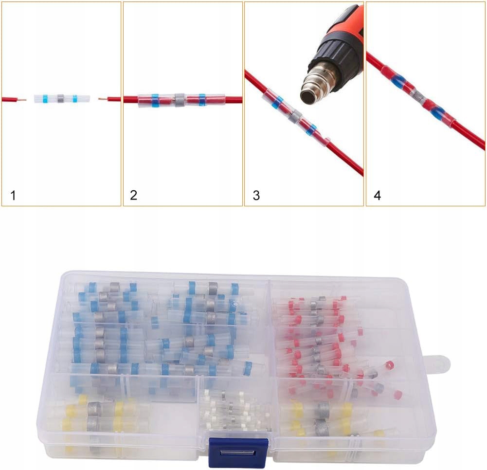 ⭐ Упакован в удобную коробку быстроразъемный разъем с жестью в термоусадке трубка для ремонта и соединения проводов.