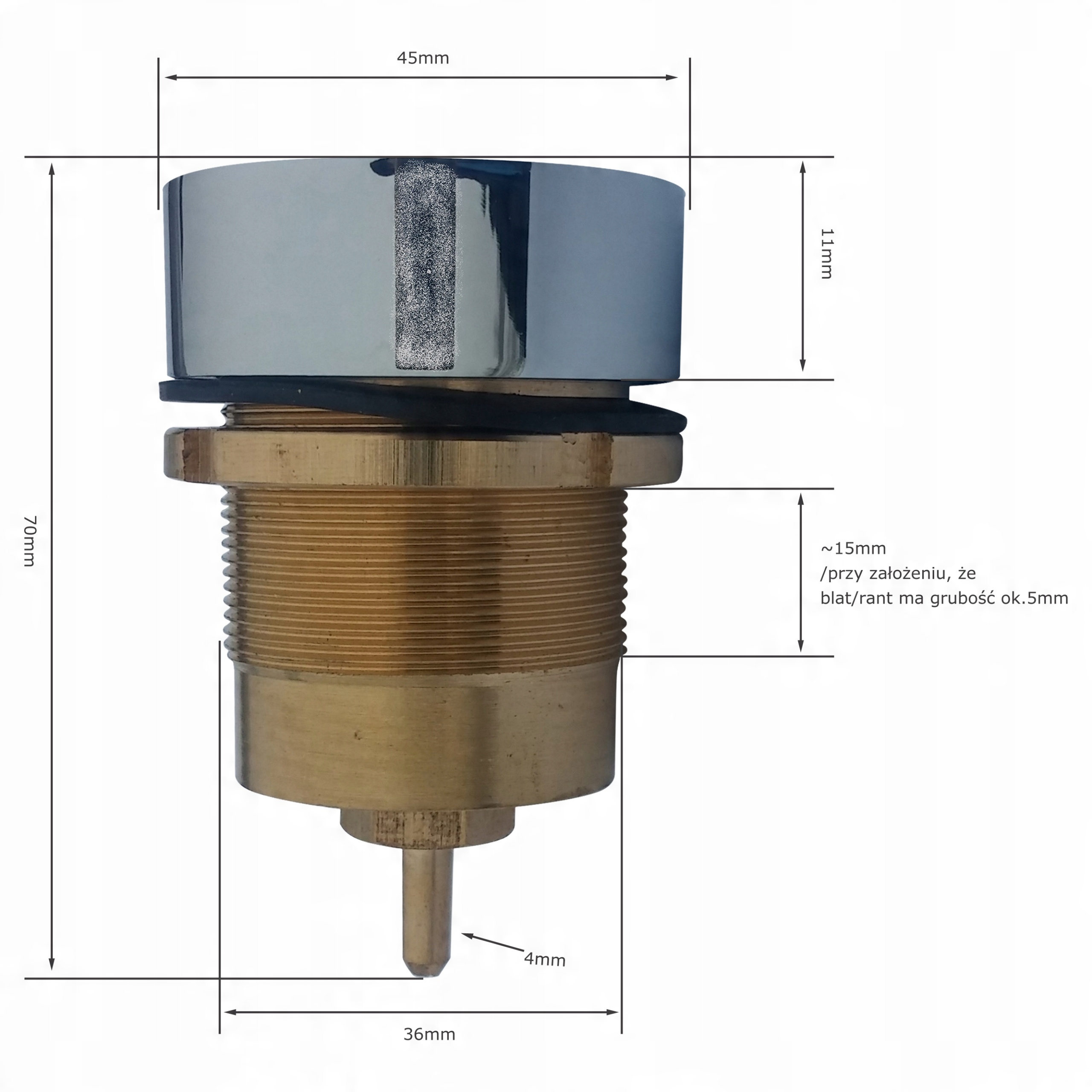 Диаметр хромированной части: 45 мм