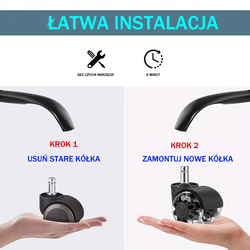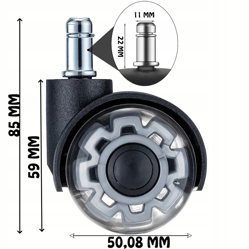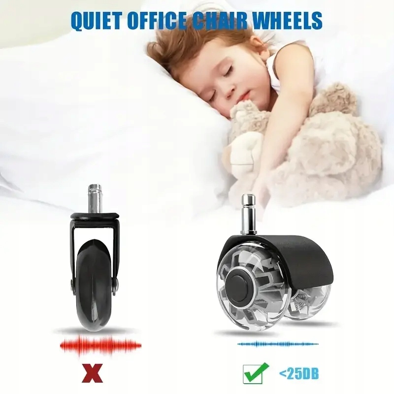 • Универсальный размер: колеса с размерами 11 мм x 22 мм соответствует большинству стандартных стульев. Идеально как запасные колеса для офиса, игры и стулья. Сила в тяжелой версии до 1000 кг делает набор идеальным даже для более тяжелых людей. Благодаря этому колеса слегка и безопасно перемещаются по твердым полам, таким как древесина, ламинат, винил, плитка, а также на ковриках. Просто вытащите старые колеса и вставьте новые - это простое и быстрое решение