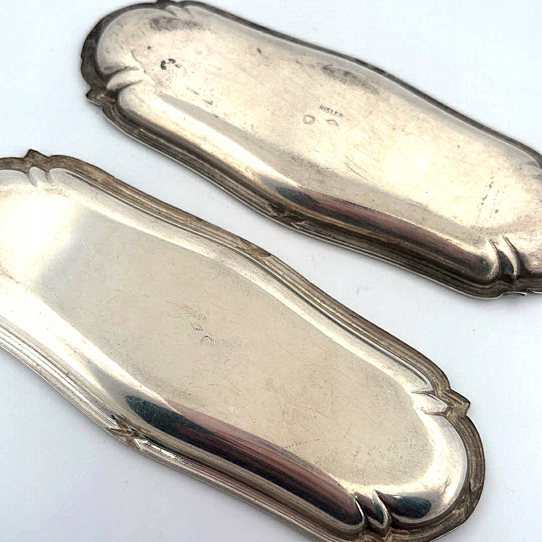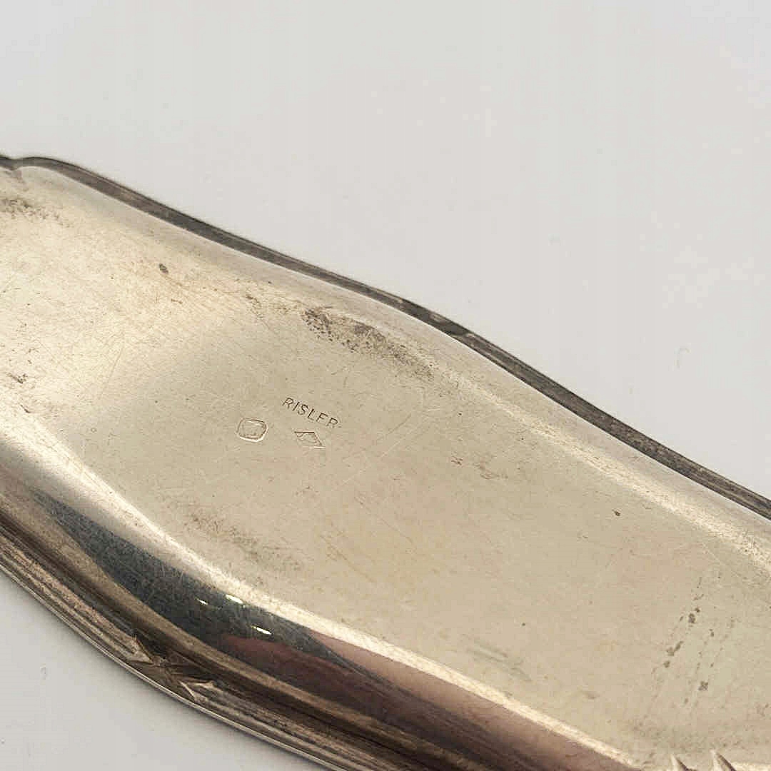 ☑️Уникальный набор из двух продолговатых подносов, изготовленный знаменитой парижской мануфактурой Рислер, действовавшей в 1897–1912 годах и известной своей роскошной посудой и ювелирными украшениями. Компания, возглавляемая Жаном Рислером и Жоржем Карре, специализировалась на серебре высочайшего качества, сочетая традиционное мастерство с эстетикой начала века и ар-деко.