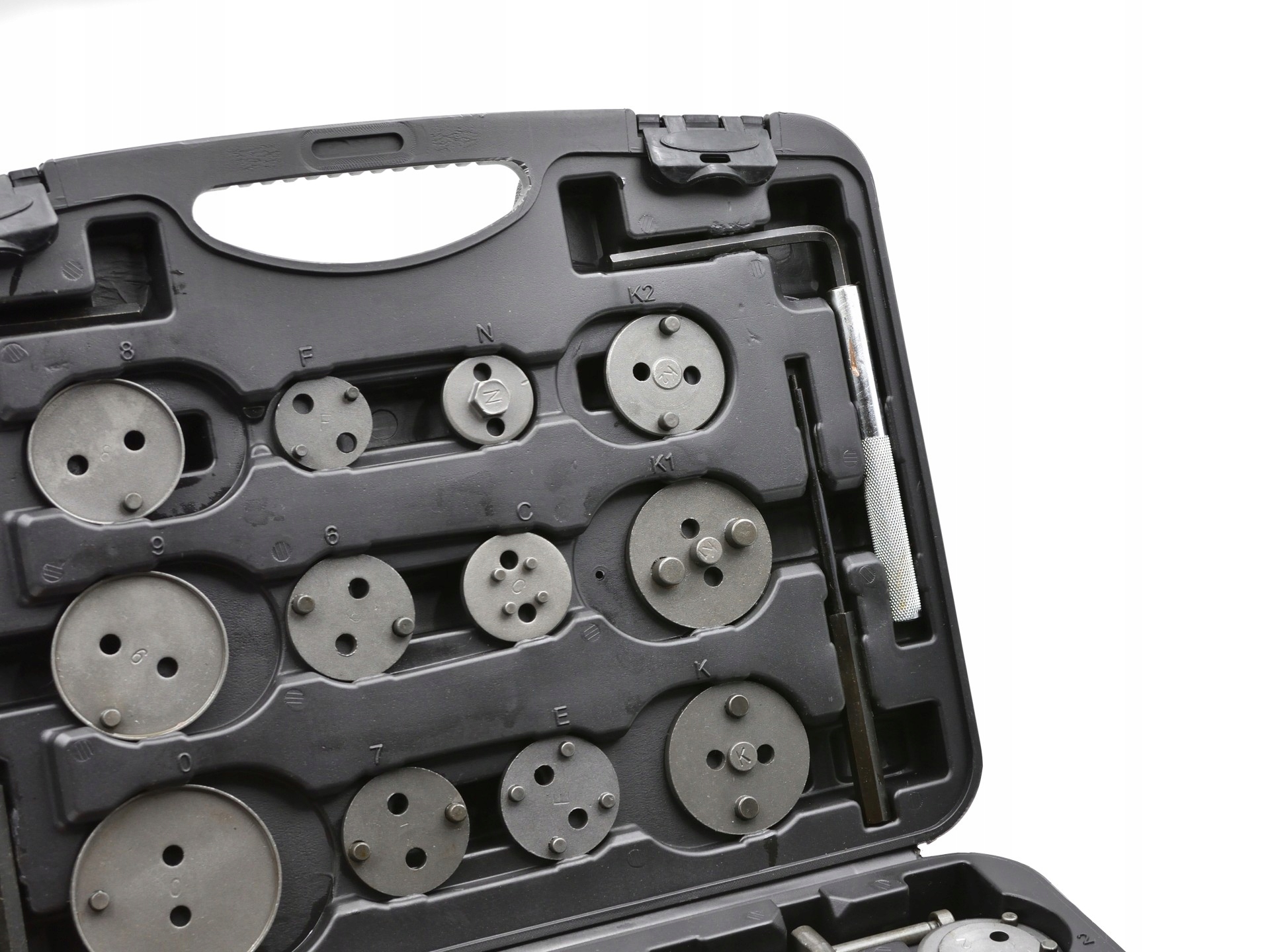 - содержит 35 деталей в 2 шт прессах (правом и левом) для втягивания тормозного поршня, ключах на 6 мм и 7 мм и 2 типа пробойников