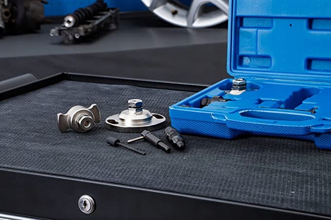 подходит для моделей Audi A4, A5, A6, AB, Q5, Q7 и VW Touareg, Phaeton с кодами двигателей ASB, BKN, BKS, BMK, BMZ, BNG, BPP, BSG, BUG, BUN, CAMA, CAMB, CANA, CANB, CANC, CAND, CAPA, CARA, CARB, CASA, CASB, CASC, CATA, CCMA, CCWA, CCWB, CDYA, CDYB, CDYC, CEXA, CGKA, CGKB для блокировки распредвалов и коленчатого вала и блокировки натяжителя необходим при замене цепи ГРМ или других работах по ГРМ двигателя Установить содержимое: