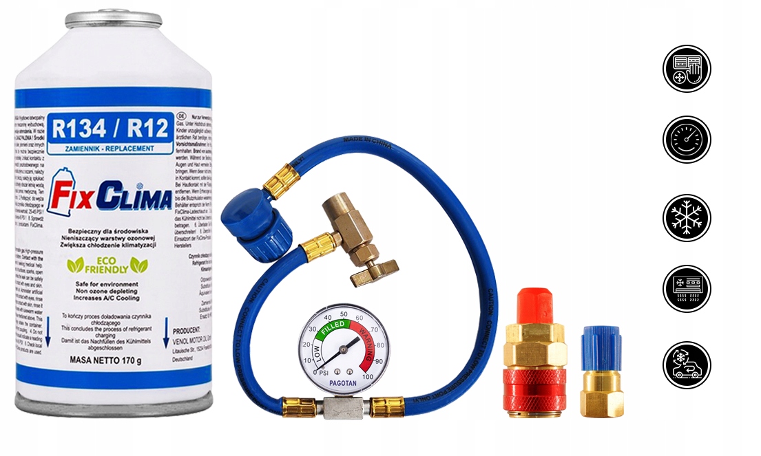 - В одной банке содержится 170 грамм хладагента FixClima, что соответствует 453 граммам предыдущего хладагента R134a.