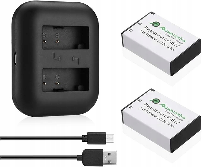 Комплект: Зарядное устройство, 2 аккумулятора LP-E17 Powerextra.