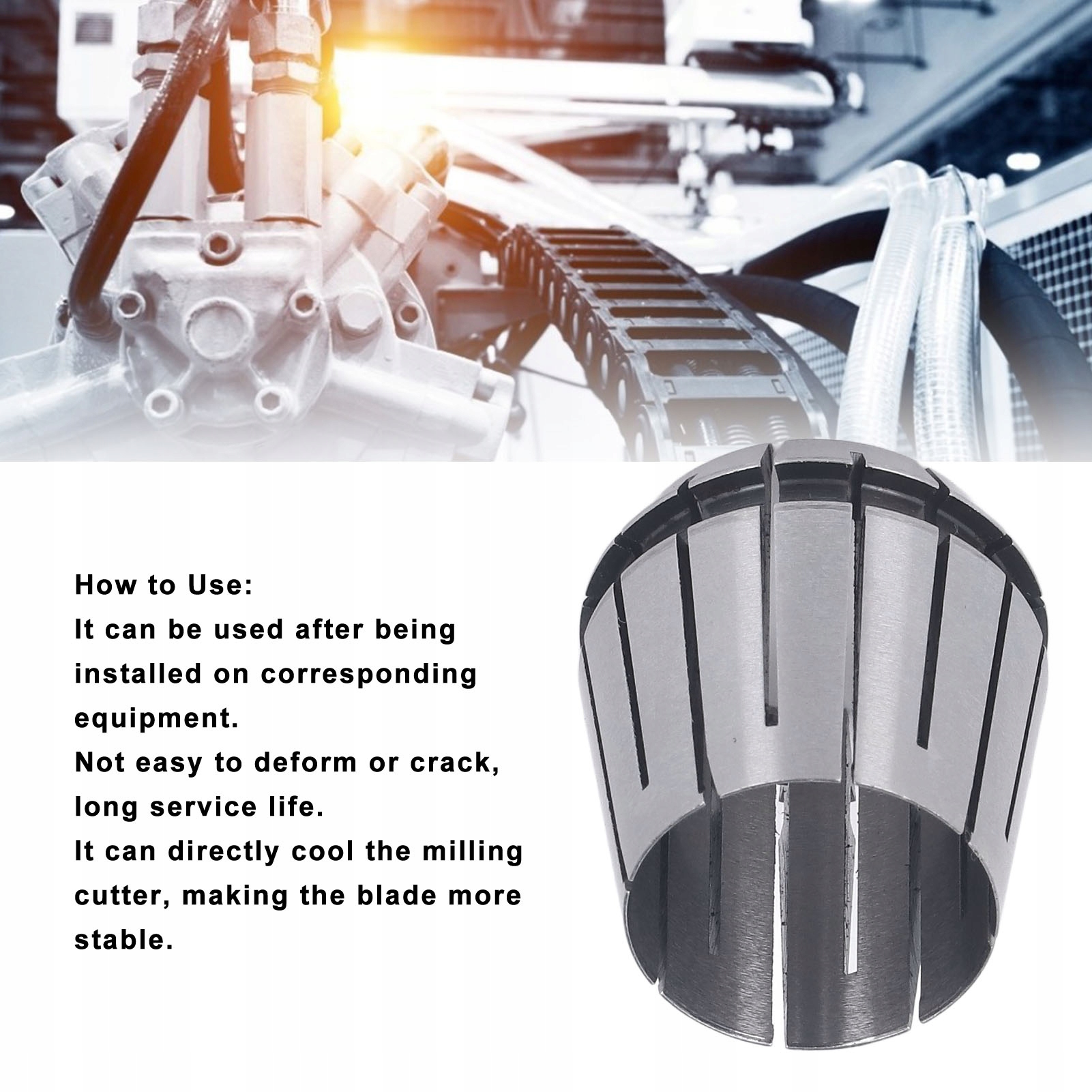 2. Практичность в использовании: широко используется на шпинделе обрабатывающего центра ER, прецизионных гравировальных станках и различных гравировальных станках, очень полезно.