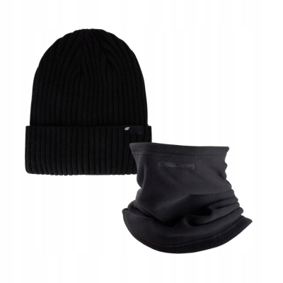 4F ЗИМОВИЙ КОМПЛЕКТ ЧОЛОВІЧИЙ: ШАПКА ТА БАФ-ХОМУТ ФЛІСОВИЙ ТЕПЛИЙ ЧОРНИЙ M
