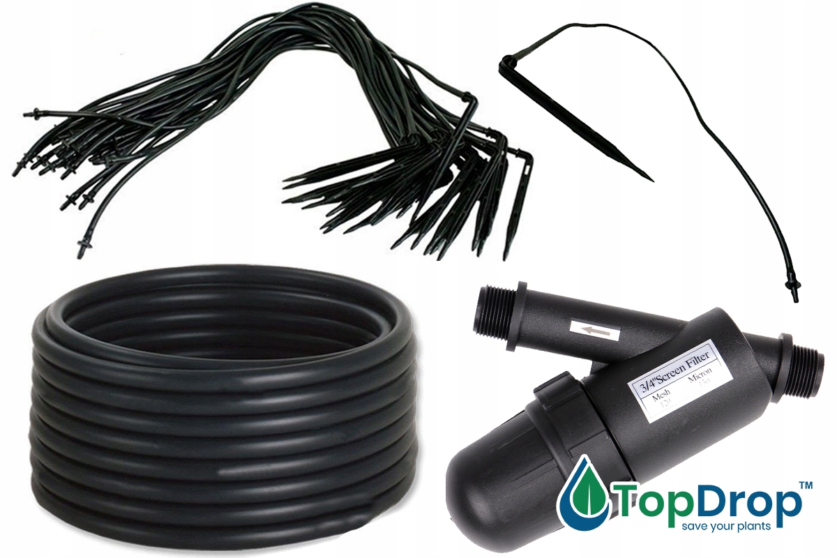 💦 Большой комплект для орошения овощей Top Drop LKZ3 с капельницами и сетчатым фильтром - источник питания на 100 растений, длина 50 метров 💦