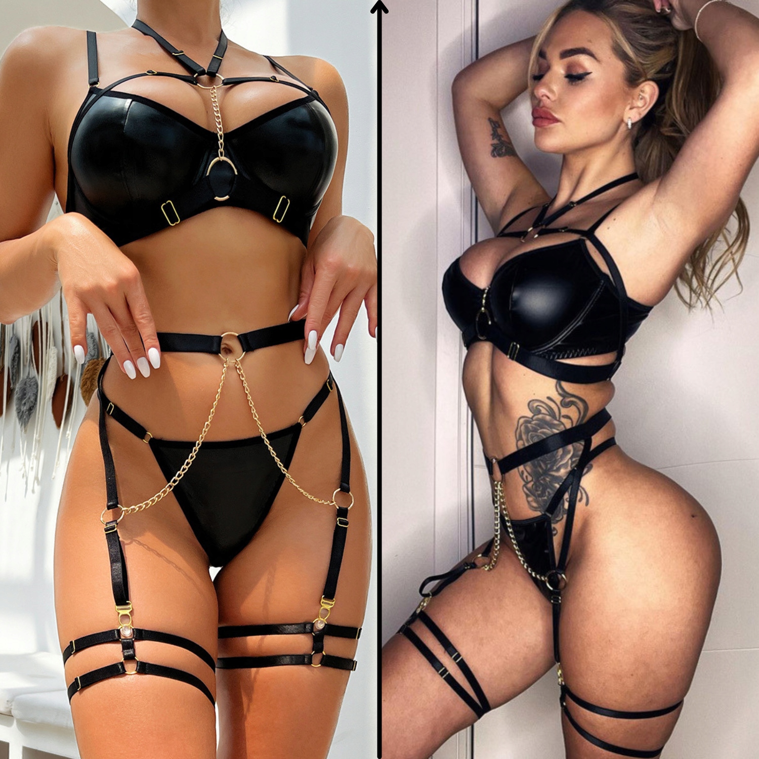 ⭐ потрачен: сексуальный кожаный набор с цепочками