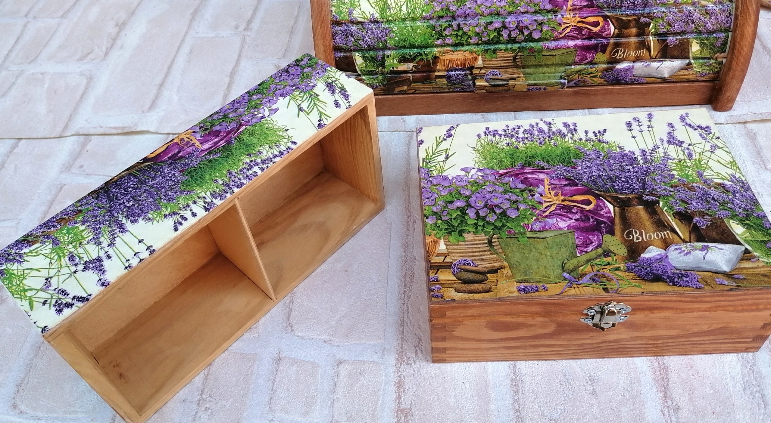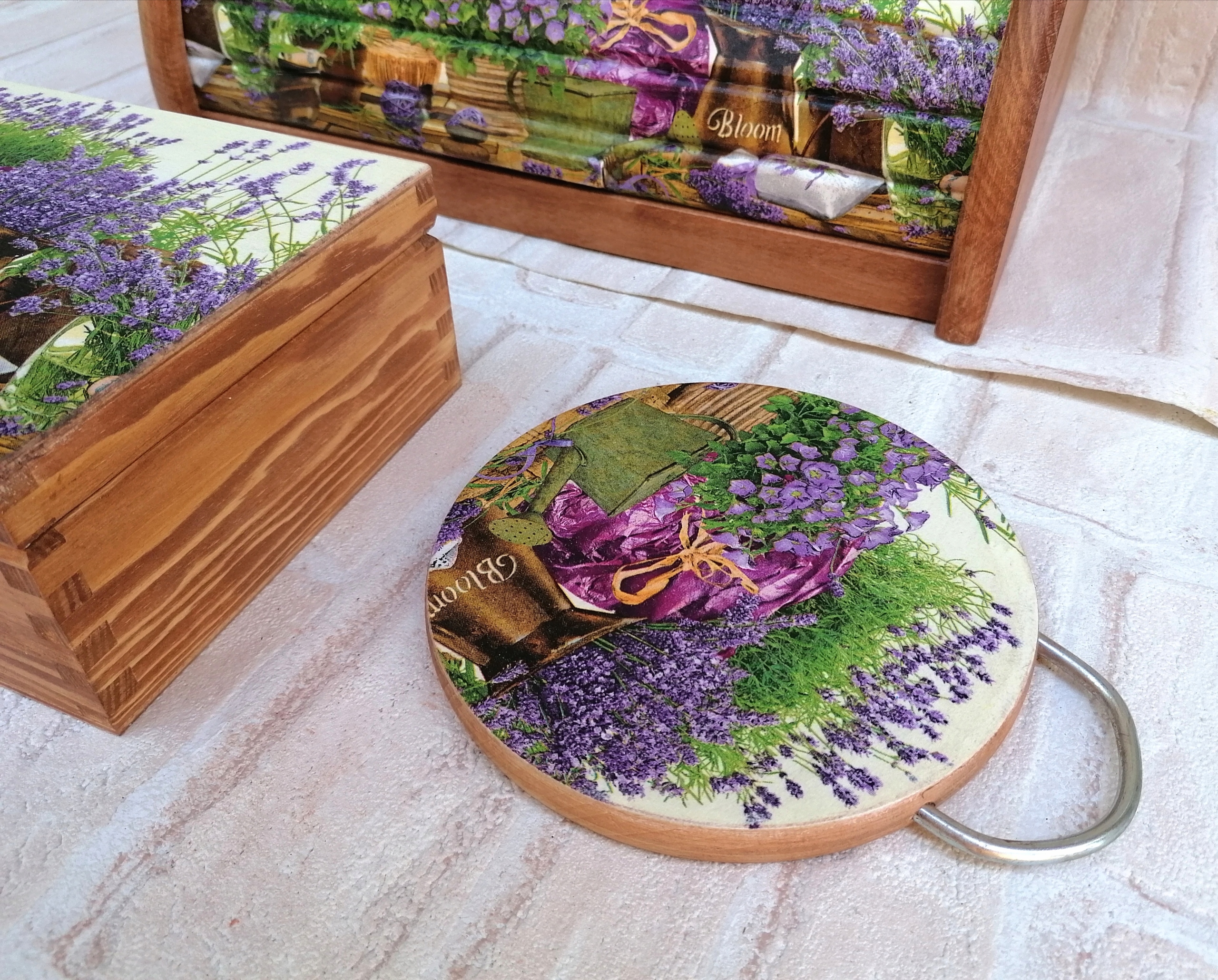 Komplet 4 cz. lawenda chustecznik herbaciarka