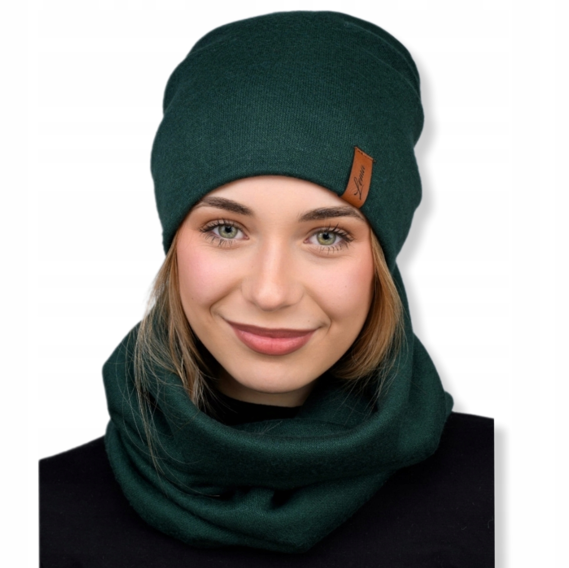KOMPLET CZAPKA SMERFETKA I KOMIN GOLF SZAL POLSKI PRODUCENT ZIELONY BUTELKO