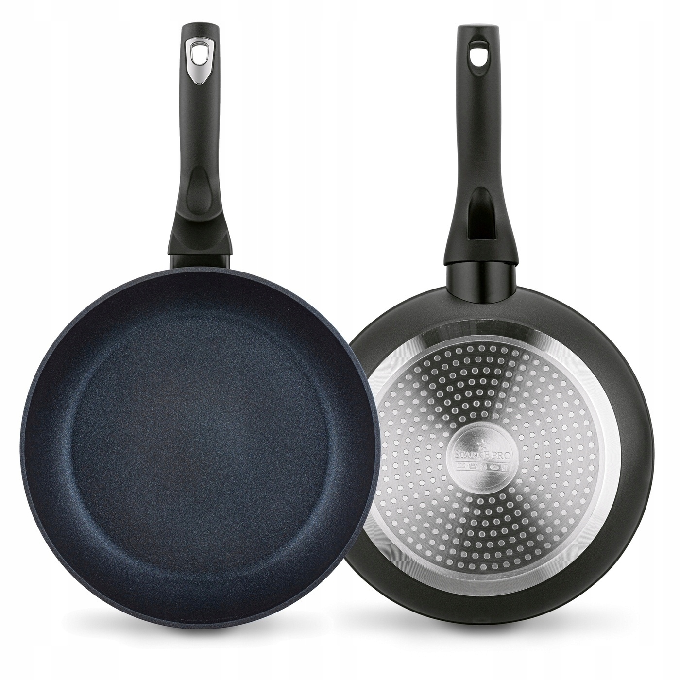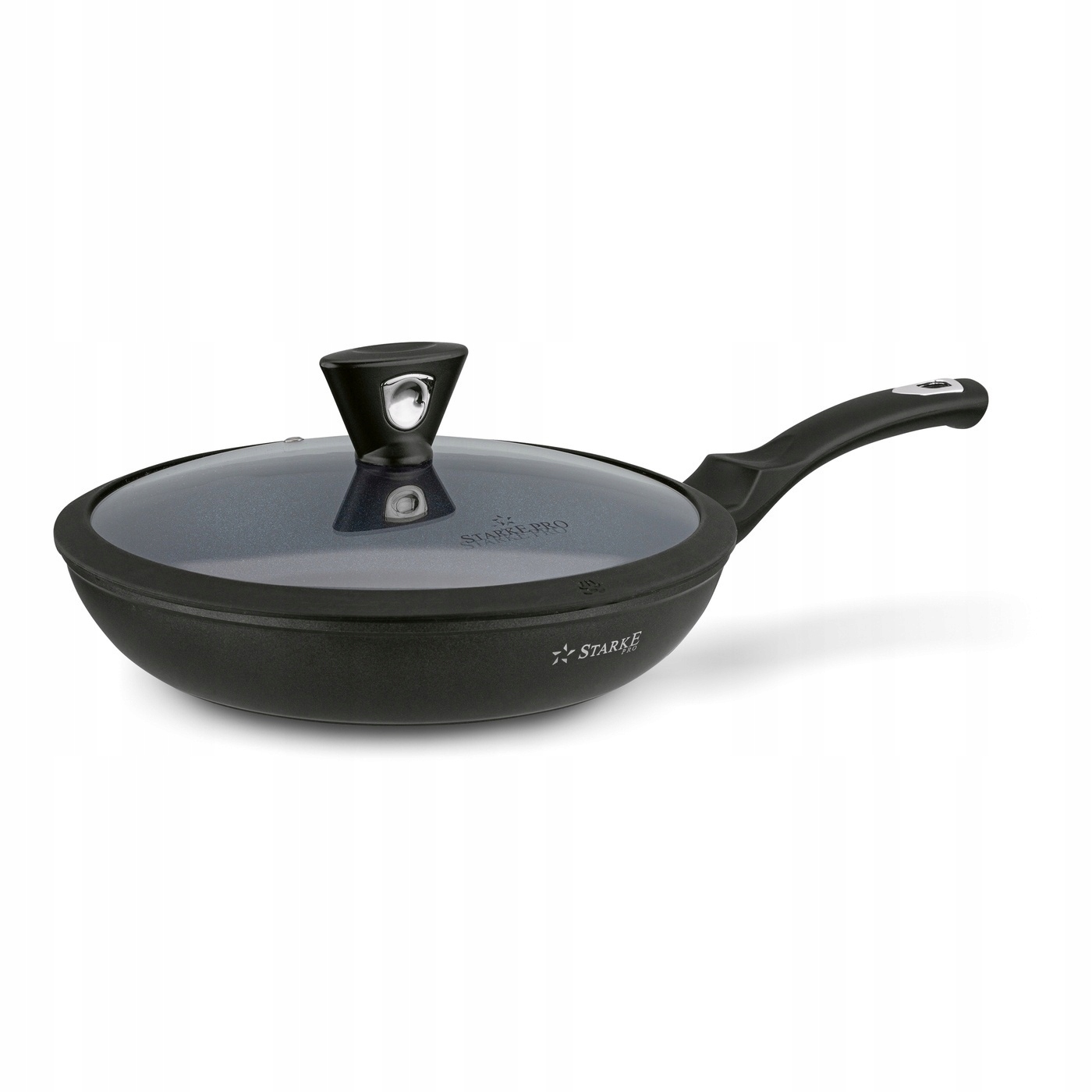 Набор индукционных кастрюль Starke Pro Dark из 10 предметов с антипригарным покрытием и крышками изготовлен из алюминия, имеет толстые стенки и защищает продукты от прилипания. Тип корпуса, который он использует, изготовлен методом горячей ковки из цельного листа металла с использованием техники ковки. Благодаря этому 3 кастрюли и 2 сковороды – 24 и 28 см – очень прочные и хорошо проводят тепло. Они также идеально сбалансированы, что в сочетании с ненагревающимися и нескользящими ручками Soft Touch обеспечит вам высокий уровень комфорта использования. Набор работает на любых типах плит, поскольку в нем используется индукционное дно толщиной 3,2 мм. Это ускоряет приготовление блюд и экономит электроэнергию. Долговечность внутренней поверхности посуды коллекции Dark основана на двухслойном антипригарном мраморном покрытии AEROLITE (толщина 50-65 микрометров). Он не содержит вредных веществ (например, ПФОК), тверд, имеет отличную адгезию и естественную текстуру, выдерживает до 50 000 циклов истирания. За ним также легче ухаживать (нельзя мыть в посудомоечной машине, только ручная стирка). В комплект также входят 5 специальных стеклянных крышек с силиконовыми краями. Благодаря им можно тушить продукты и удобно регулировать количество пара внутри кастрюль или сковородок. Серию Starke Pro Dark с каменно-гранитным покрытием также протестировал профессиональный шеф-повар Петр Кучарский. Он рекомендует его для длительного использования на домашней кухне.