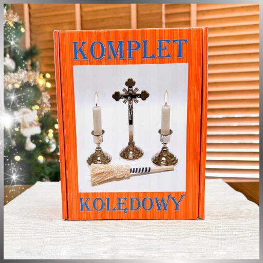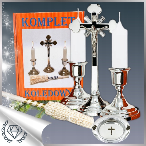 Komplet kolędowy PEŁNY ZESTAW NA KOLĘDĘ świece kropidło miseczka krzyż