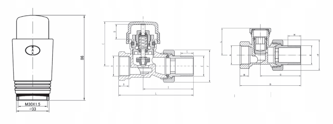 KOMPLET TERMOSTATYCZNY PROSTY ZAWÓR + GŁOWICA BIAŁY