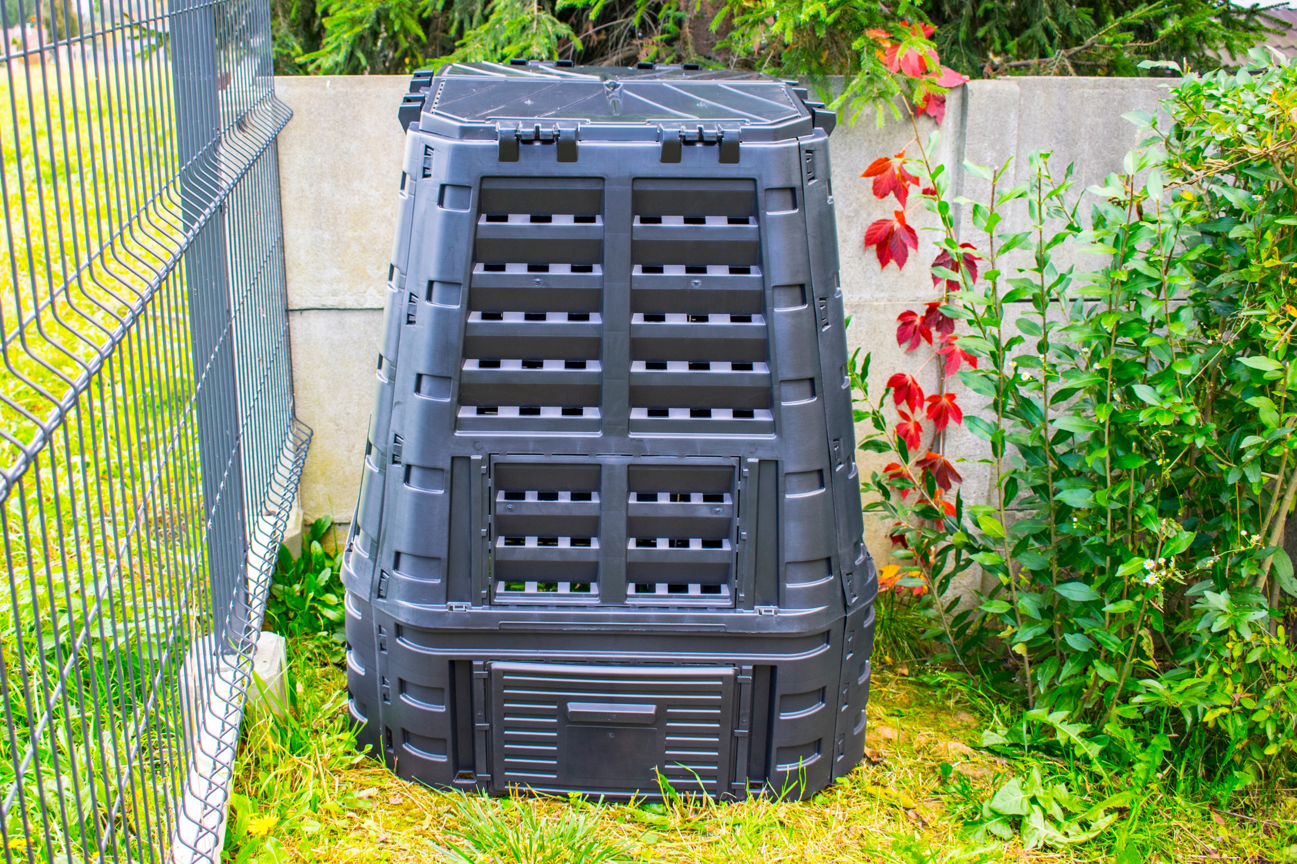 Цвет компостера не потускнеет под воздействием солнца, а сам контейнер не деформируется: используемый материал устойчив к УФ-излучению. Все это делает контейнер круглогодичным аксессуаром – его можно разместить в саду, не беспокоясь о повреждении в результате воздействия непогоды.