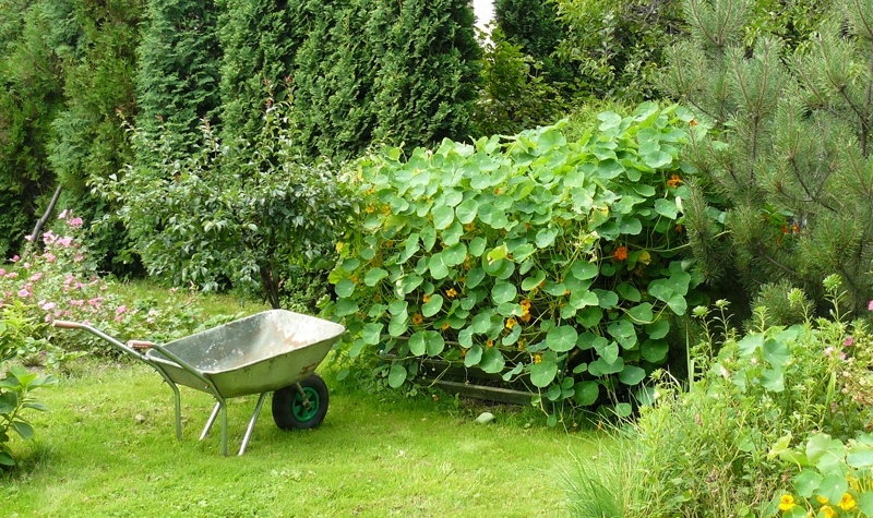 Стальная конструкция с порошковым покрытием зеленого цвета RAL 6005 в сочетании с деревом (необработанные, неокрашенные доски) создает неразрушимый каркас, легко монтируемый и демонтируемый.