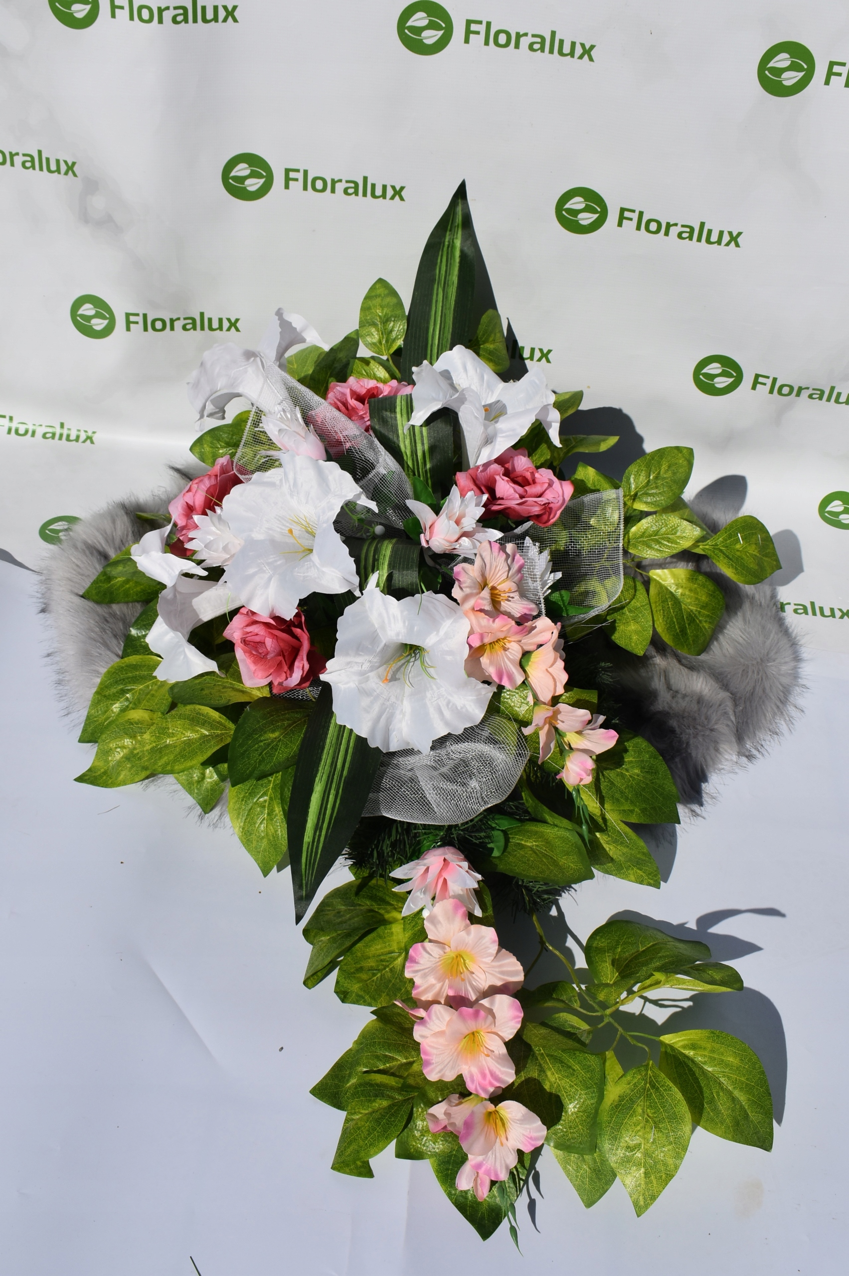 Букет WZ013 – идеальный способ быстро и элегантно украсить могилу своих близких. Идеально подойдет как ко Дню поминовения усопших, так и в другие дни, когда вы хотите позаботиться о памяти своих близких. Все материалы, которые мы использовали для его изготовления, устойчивы к погодным условиям. Это значит, что эта цветочная композиция будет долго выглядеть так же красиво, как и в день, когда ее поставили на кладбище. Букет WZ013 выполнен на искусственной основе, так называемой ТРЕУГОЛЬНИК с 33 отверстиями с использованием искусственных цветов высочайшего качества.