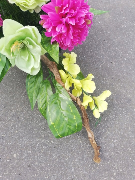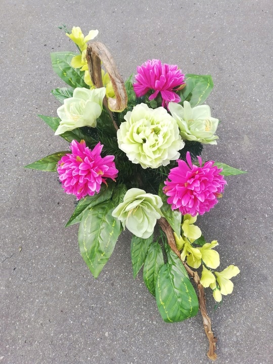 Цветочная композиция на могилу была тщательно составлена, с соблюдением модных цветов, из очень качественных материалов и искусственных цветов.