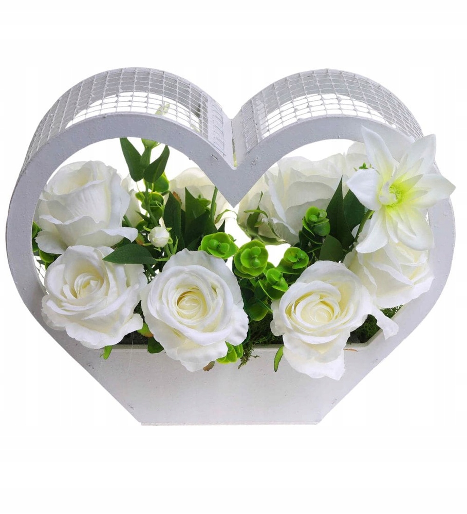 Цветочный состав Белые розы в белом сердце искусственные цветы Komp106