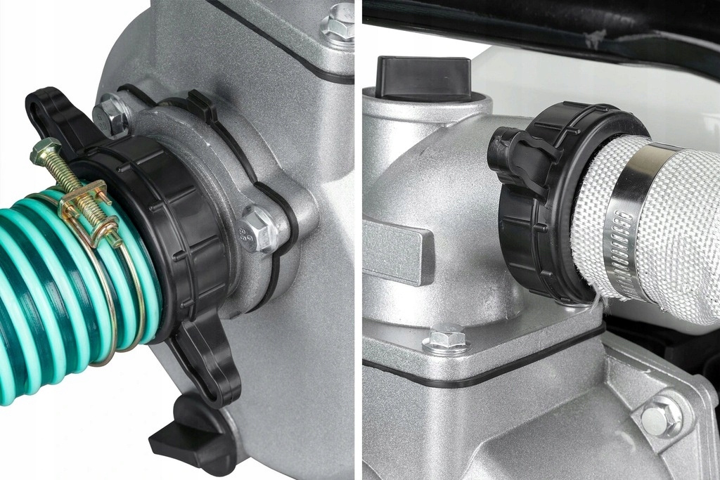 <ул>ВНИМАНИЕ! Для того, чтобы подсоединить пожарный шланг к насосу, сначала снимите оригинальный быстроразъемный разъем и замените его на разъем, входящий в комплект - видно на фото ниже.