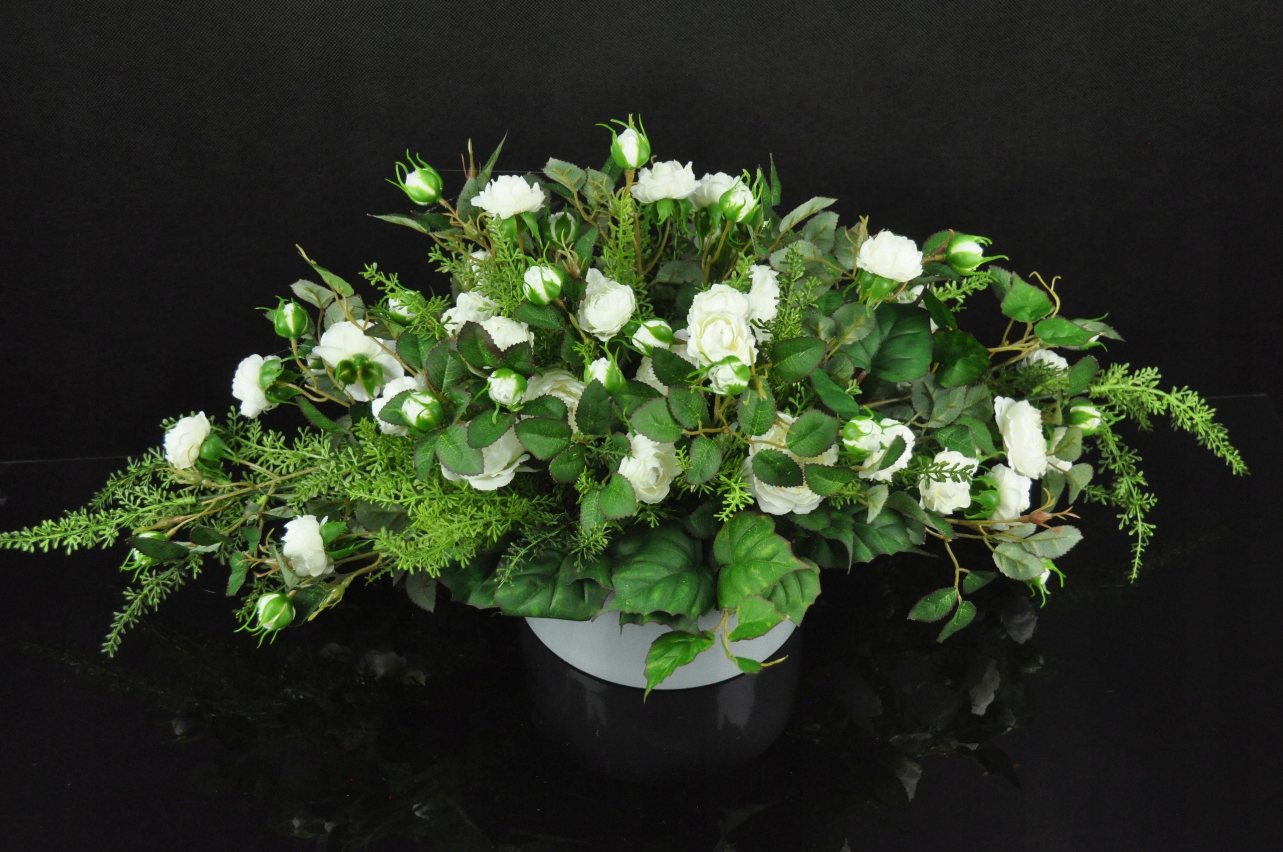 Композиція з білих троянд керамічний вазон цвинтарний