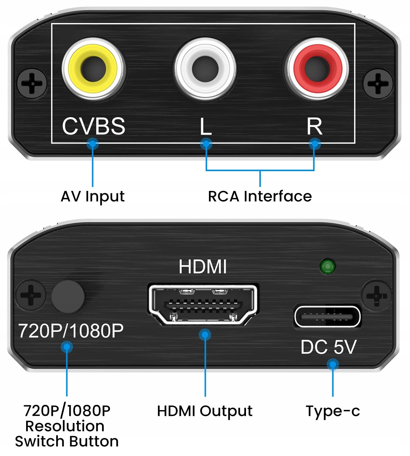 <р> Plug to Play: быстрая и простая установка без необходимости использования дополнительного программного обеспечения. Просто подключите свои устройства с помощью кабелей RCA и HDMI и подайте питание, чтобы наслаждаться превосходным качеством изображения. <р> Идеальная совместимость позволяет использовать со старыми игровыми системами и различными устройствами. Перенесите свои проекции на HD-телевизор или монитор и заново откройте для себя любимый контент. <р> В комплект входят: преобразователь RCA в HDMI, кабель питания USB и руководство пользователя для простой настройки. Вооружитесь современным инструментом, чтобы возродить классические визуальные впечатления!Параметры продукта