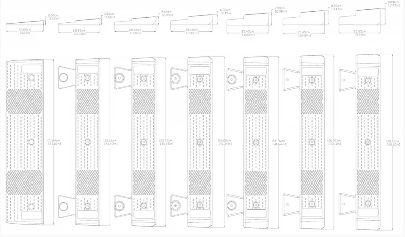 - Размеры : модульная рампа, что означает, что каждый модуль увеличивает вторжение на 1/2 "