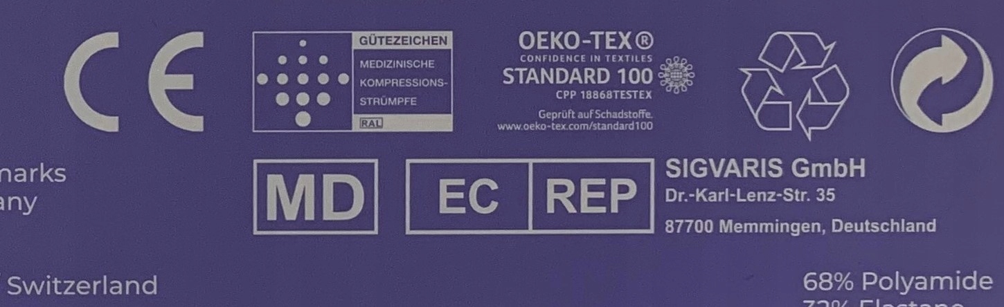 Из соображений гигиены просим вас примерить компрессионные изделия (колготки, чулки и гольфы) поверх другого чулочно-носочного изделия (например, тонких колготок, чулок или гольфов). Это защитит продукцию от загрязнения.