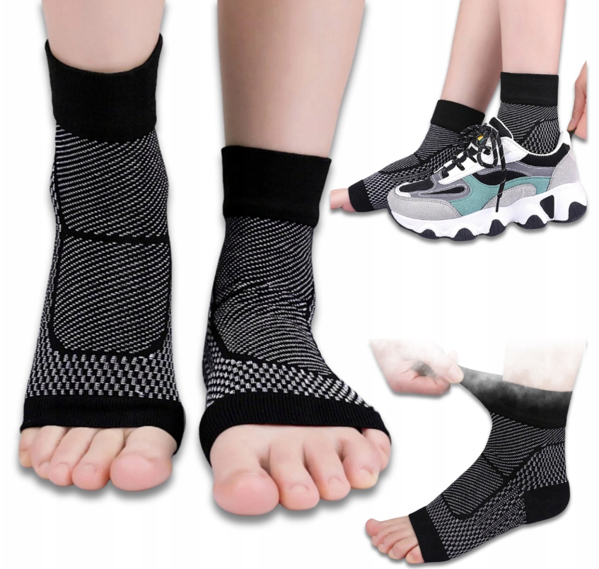 Носки предназначены для поддержки уставших ног и пяток. Предотвращает и снимает боль и дискомфорт, возникающие в результате различных заболеваний стоп, таких как: отек после стоячей работы, отек после тренировки или соревнований, отек во время беременности, боль из-за подошвенной боли фасциит, тендинит ахиллова сухожилия или тромбоз глубоких вен