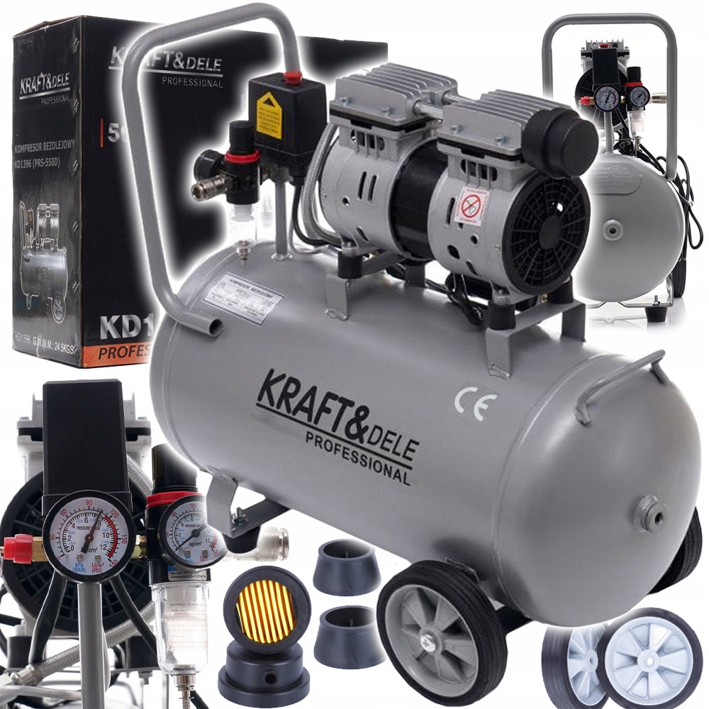 КОМПРЕСОР 50Л БЕЗМАСЛЯНИЙ 2 ПОРШНІ 2 НАСОСИ СПРЕЗЕР 230В СЕПАРАТОР