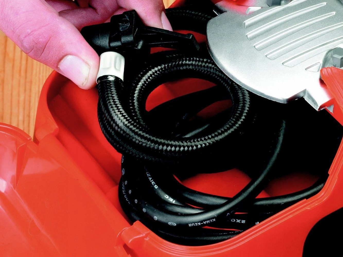 В корпусе компрессора имеется отсек для шнура питания и напорного шланга