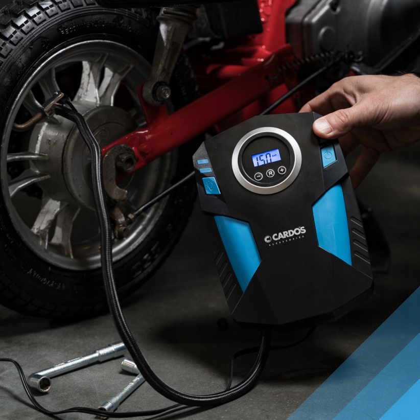 Автомобильный компрессор CARDOS AA406 с ЖК-дисплеем — практичное и эффективное устройство для накачивания автомобильных шин, мотоциклов, велосипедов, спортивно-туристического инвентаря.