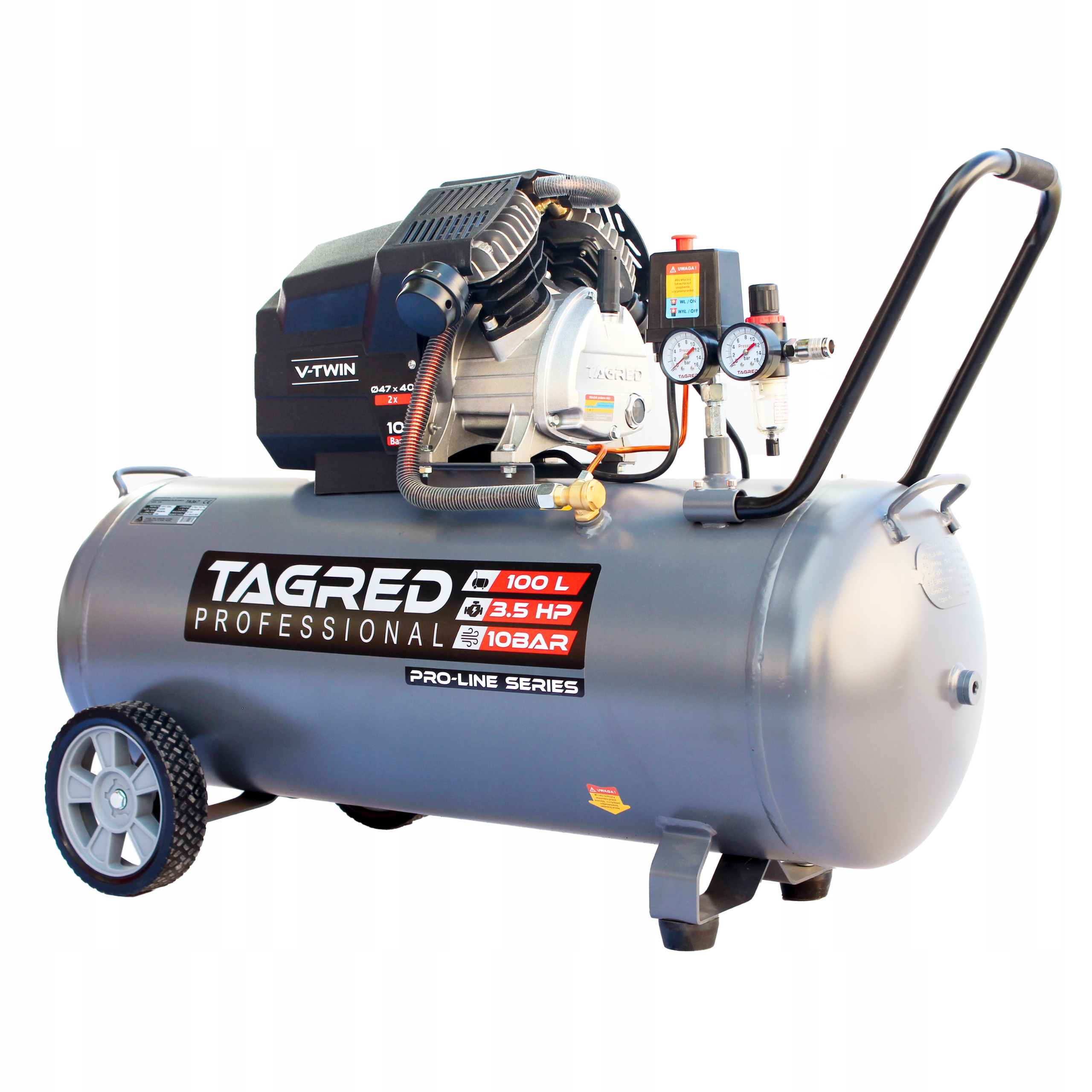 Компрессор TAGRED, благодаря настройке завода до максимального давления 10 бар , обеспечивает большую эффективность и универсальность по сравнению со стандартными решениями, доступными на рынке. благодаря тому, что он предлагает широкий спектр приложений, как в профессиональных семинарах, так и в домашних гаражах. Такое высокое давление позволяет эффективным поставки различных типов пневматических, красок и устройств, требующих стабильного и сильного воздушного потока. Это означает, что компрессор идеально подходит как для интенсивного промышленного использования, так и для ежедневной работы DIYS