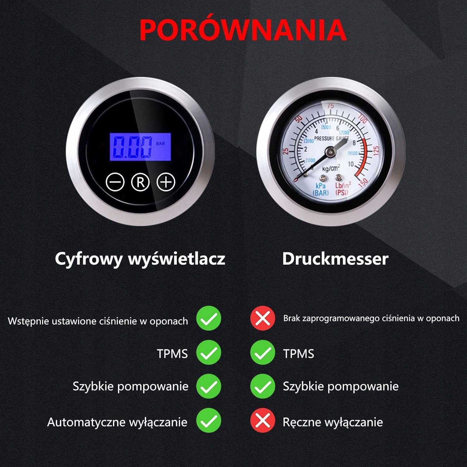 ???? В сочетании с 11,5 футами кабеля питания, как передние, так и задние шины будут полностью заботиться. Наш автомобильный воздушный насос также компактный и легкий. 100% воздушного насоса для автомобильных шин оснащен дополнительными 3 соплами в дополнение к оригинальным навышенным устройствам, таким как автомобильные шины и спортивное или развлекательное оборудование, в том числе компактный или средний седан, внедорожник, квадроцикл, велосипед, мотоциклы, воздушный матрас, Раздутые лодки, шарики. ???? Установите желаемый уровень давления и начните перекачивать. Когда наш автоматический наполтор шин достигает желаемого давления, автомобильный компрессор отключается автоматически, поэтому вам не нужно беспокоиться о чрезмерном надувании. ???? Вы также можете выбрать желаемую единицу измерения давления: PSI, BAR, KPA или кг/см². ???