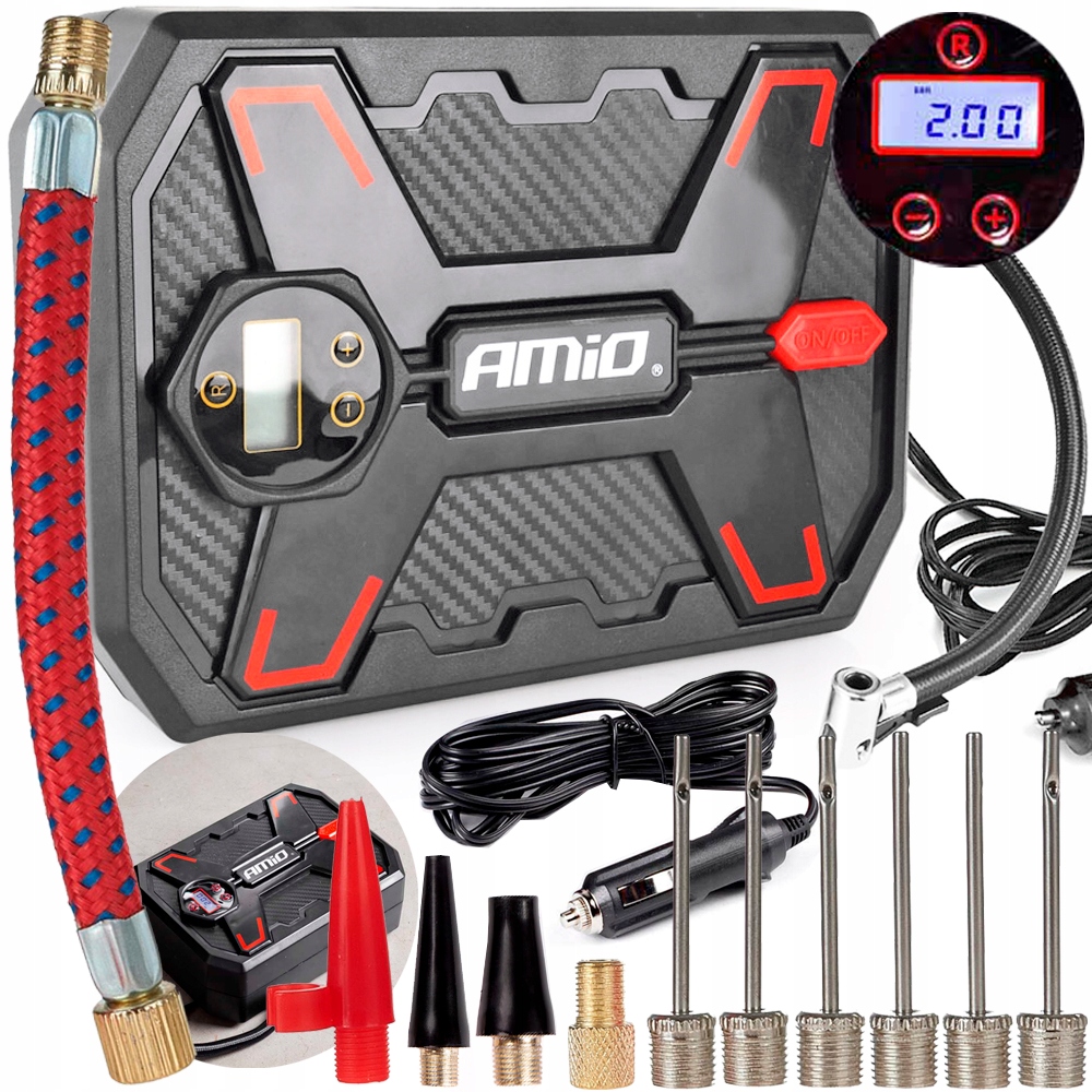 KOMPRESOR SAMOCHODOWY SPRĘŻARKA POMPKA DO KÓŁ 12V LCD + ZESTAW KOŃCÓWEK
