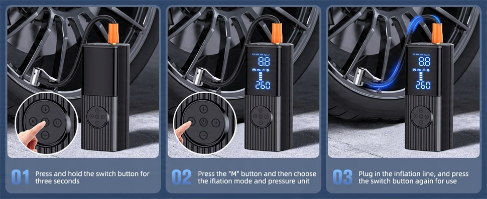 ✅【Режим накачивания 4+N】 Воздушный компрессор имеет четыре типа единиц измерения давления. : PSI, кПА, БАР и кг/см². Предусмотрено четыре предустановленных режима надувания: велосипед, мотоцикл, автомобиль и мяч. В пятом пользовательском режиме вы также можете установить значения давления в зависимости от объекта перекачки, чтобы удовлетворить различные требования к перекачке. Это незаменимый продукт для вашей повседневной жизни и путешествий.