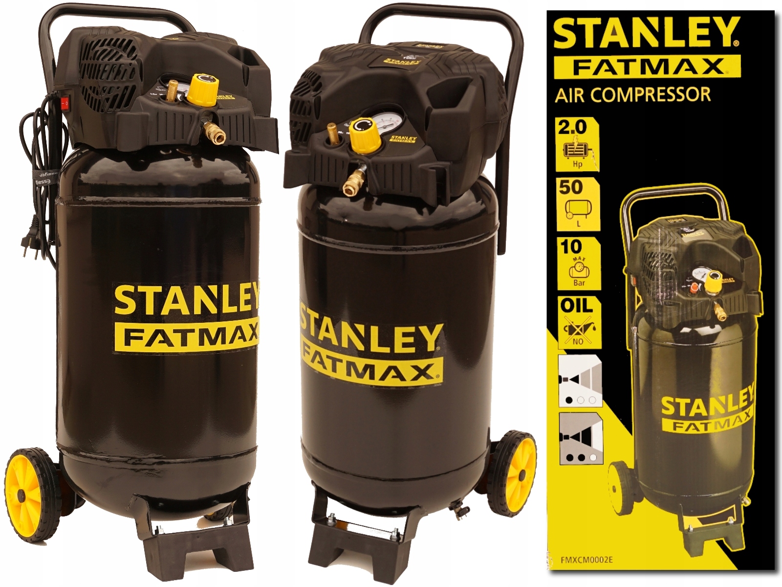 - полный компрессор STANLEY 50L и фирменная коробка STANLEY