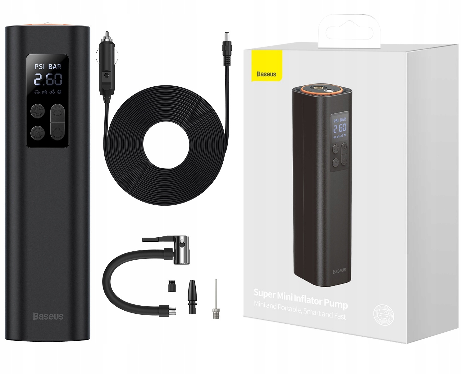 Недостаток воздуха в шине по дороге на работу, а может быть проблема с камерой велосипеда во время поездка на велосипеде? Мини-компрессор Baseus будет надежным в таких ситуациях. С его помощью вы сможете быстро накачать воздух в шины или мяч. Благодаря компактному дизайну устройства его легко хранить. Его можно запитать от любой автомобильной розетки напряжением 12 В, а светодиодный дисплей обеспечивает удобный доступ к самой важной информации.