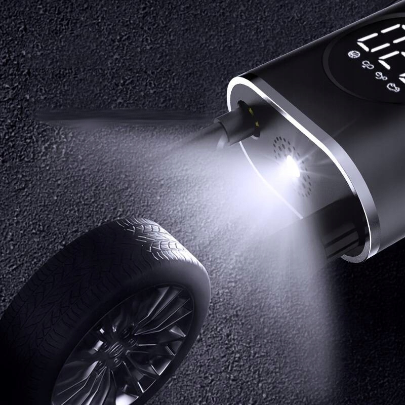 ⭐ Воздушный компрессор со встроенным фонариком, работающий от аккумулятора. Идеально подходит для накачивания автомобильных шин, велосипедных шин, мячей, матрасов и многого другого.