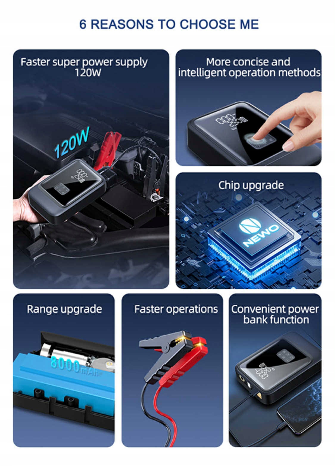 2 в 1: Стартер + Компрессор - заведите автомобиль с разряженным аккумулятором и накачайте колеса одним устройством
