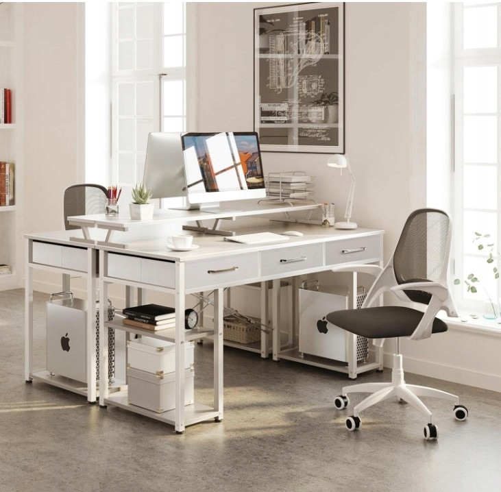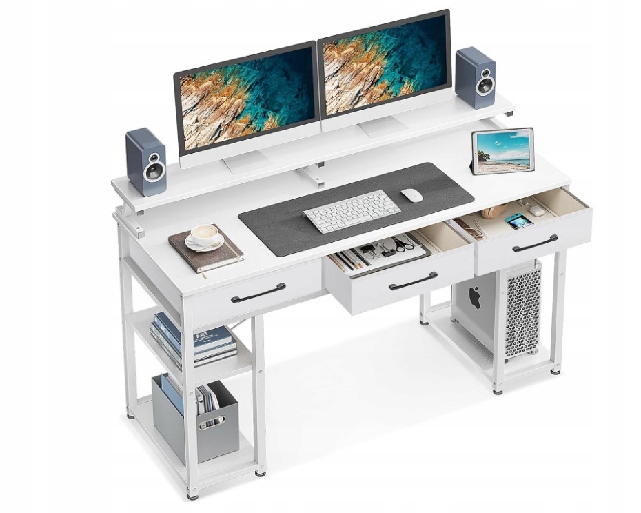 - 【Компьютерный стол с подставкой для монитора】: Стол с приподнятой подставкой для монитора, а также размещение мониторов на удобном уровне глаз, чтобы не напрягать глаза или шею и сохранять экраны на удобной высоте для работы. Держите ваша шея здорова, но в то же время обеспечивает дополнительное место для хранения вещей!