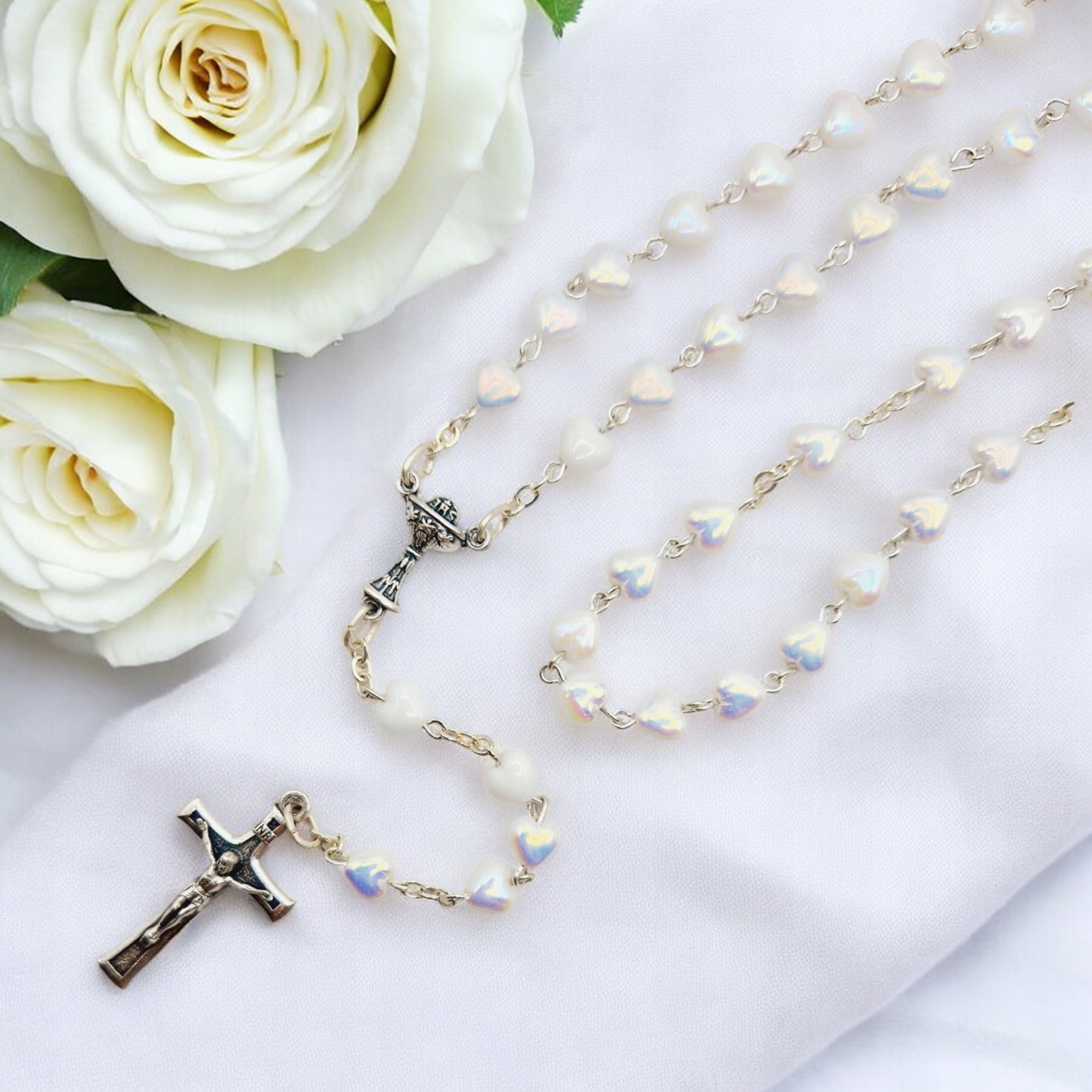 Причастные четки для девочки. Четки+коробочка, БЕЛЫЕ СЕРДЦА, красивые