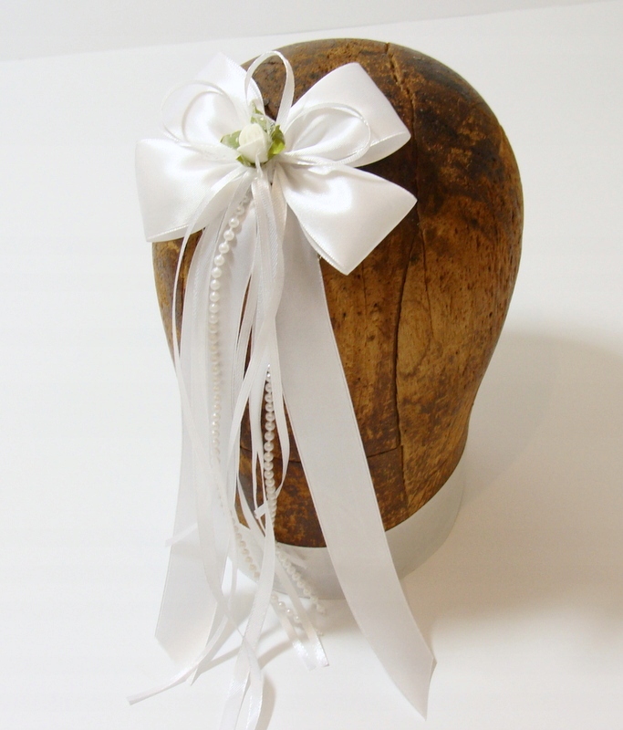 Спинную часть венка украшает белый атласный бантик, прикрепленный к гребню!!!