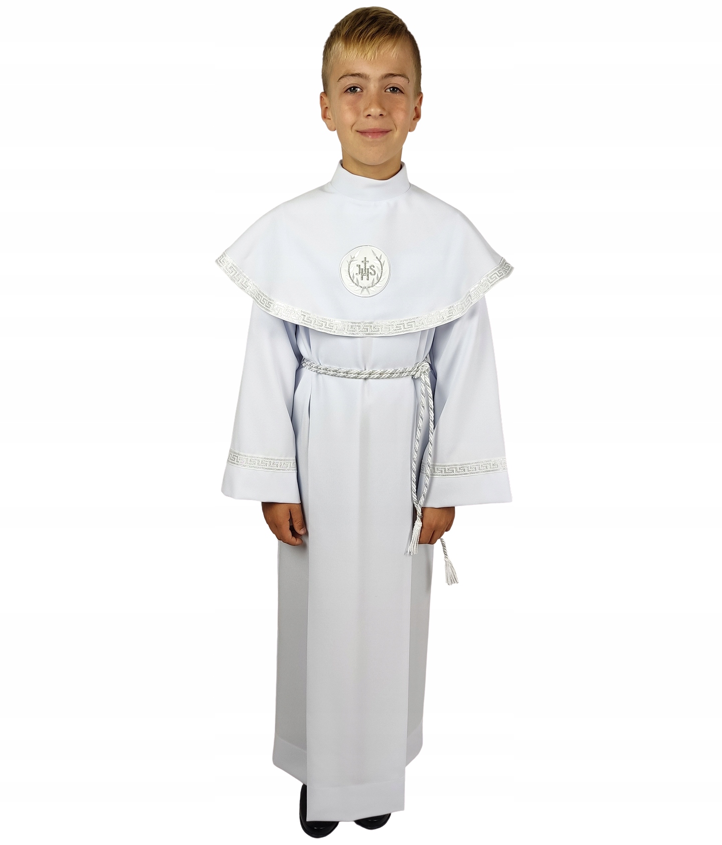 Рукава и накидка отделаны серебряной галантерейной отделкой. К альбу прилагается шнурок в тон, который подчеркивает литургический характер облачения.