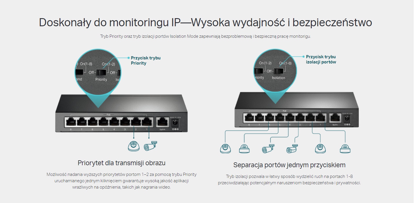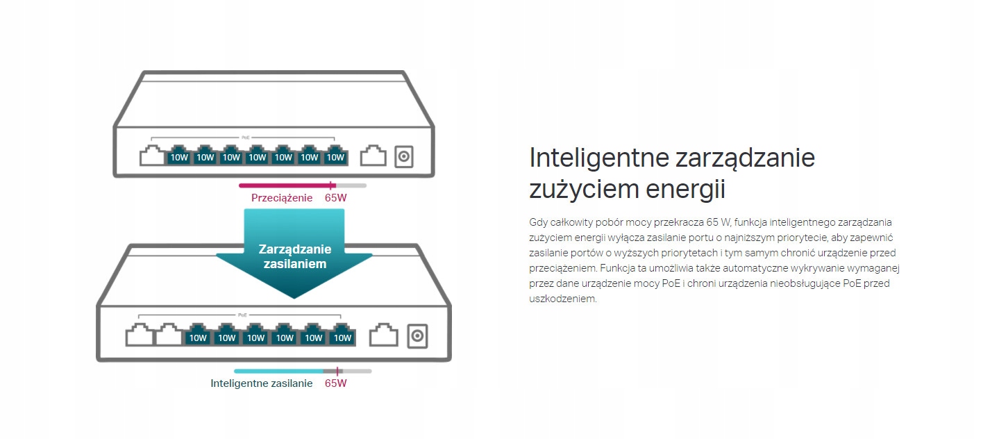 8 портов PoE, передача данных и питание устройства через них только кабели