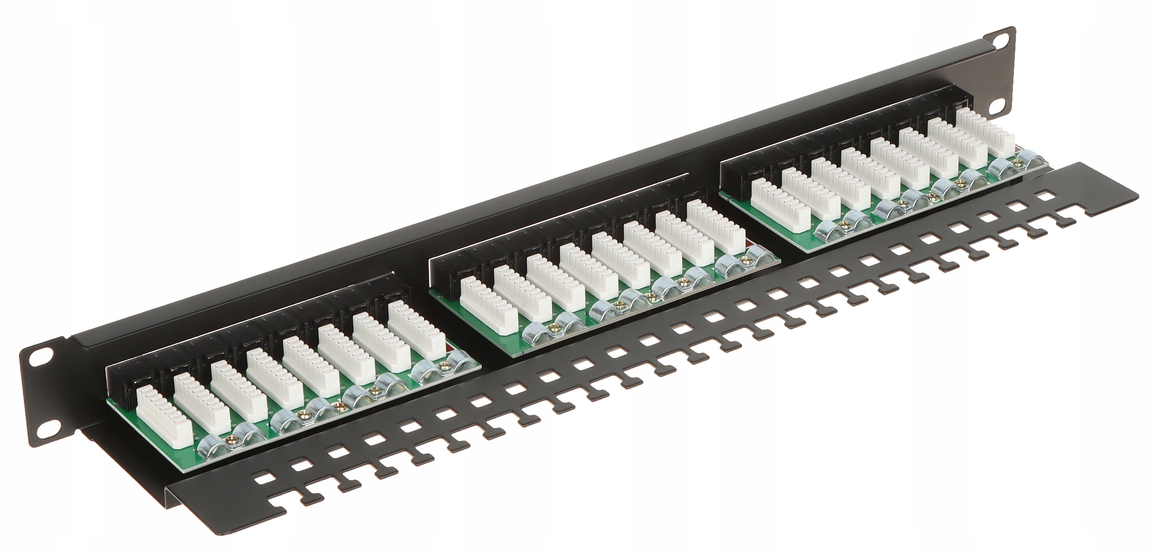 Устройство заделывает структурированную кабельную систему для кабелей UTP категории 6. Устройство монтируется в 19" RACK шкаф.