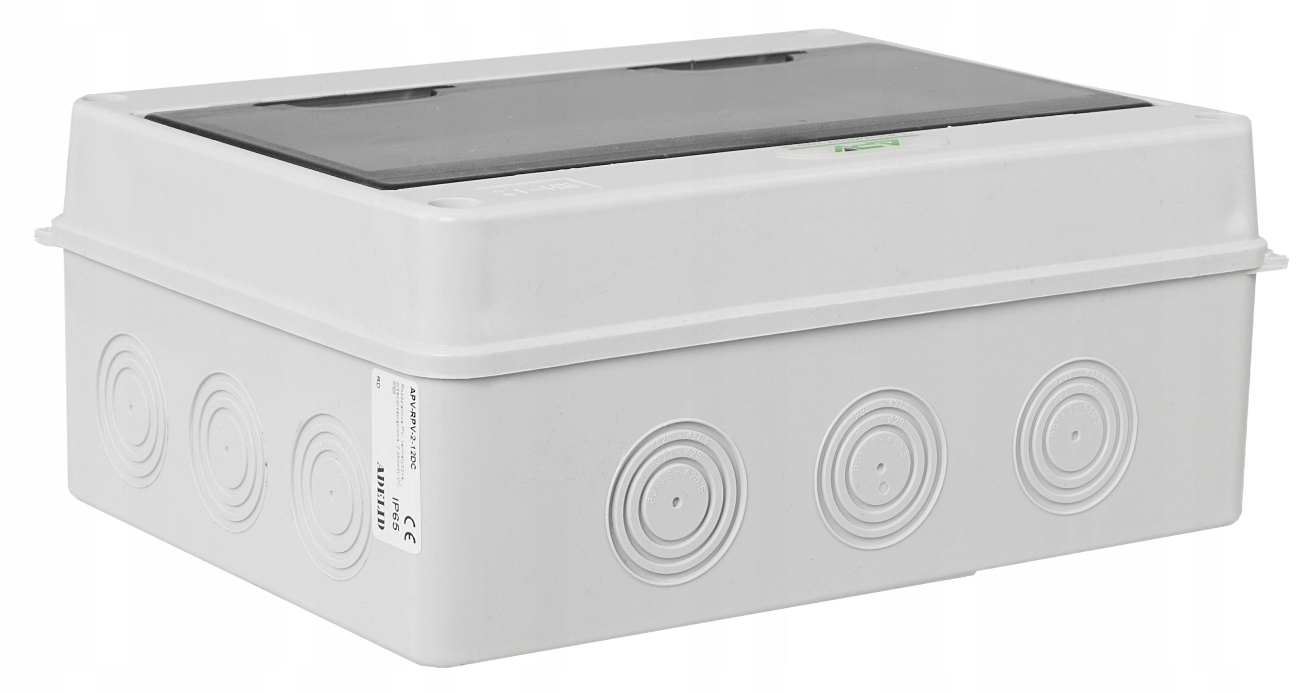 - Корпус распределительного устройства на 12 модулей, для поверхностного монтажа, герметичный IP65, с прозрачной дверцей.
