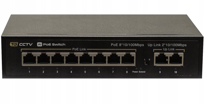 Коммутатор оснащен 10 портами LAN, включая 8 портов PoE со скоростью 10/100 Мбит/с, что обеспечивает передачу данных и энергии в формате 802.3af/ стандарт протокола, с общим бюджетом мощности 96 Вт.