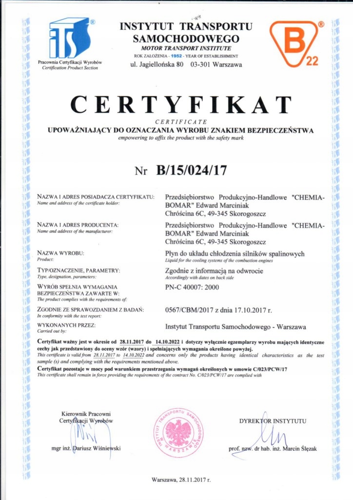 Охлаждающая жидкость имеет сертификаты ITS и знак безопасности B. Подходит для всех марок легковых и грузовых автомобилей. Особенно рекомендуется для следующих марок: